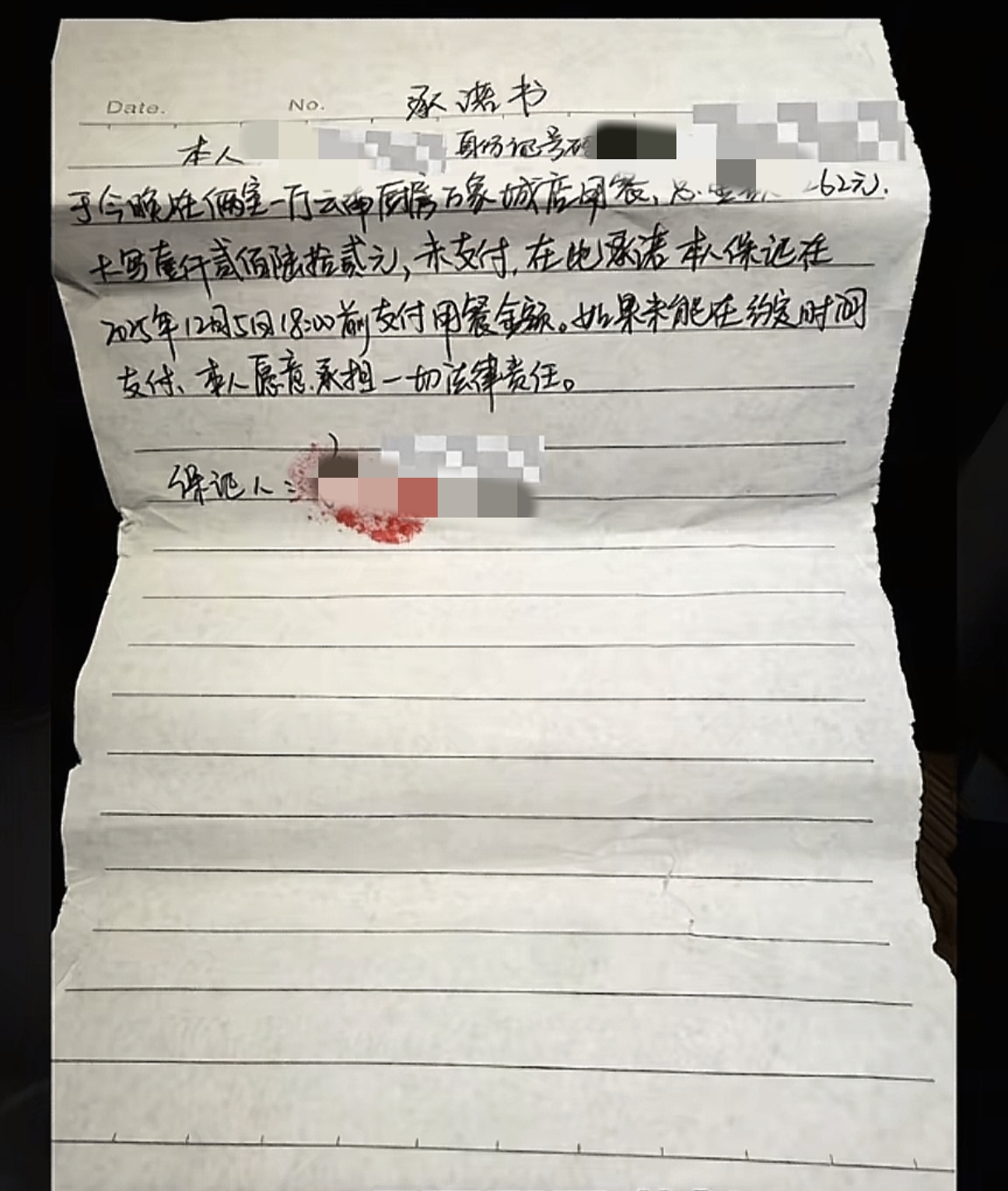 张先生写了承诺书并留了自己的身份证,保证第二天下午6点前把账单结了,如果组局者不来,自己将承担一切费用。