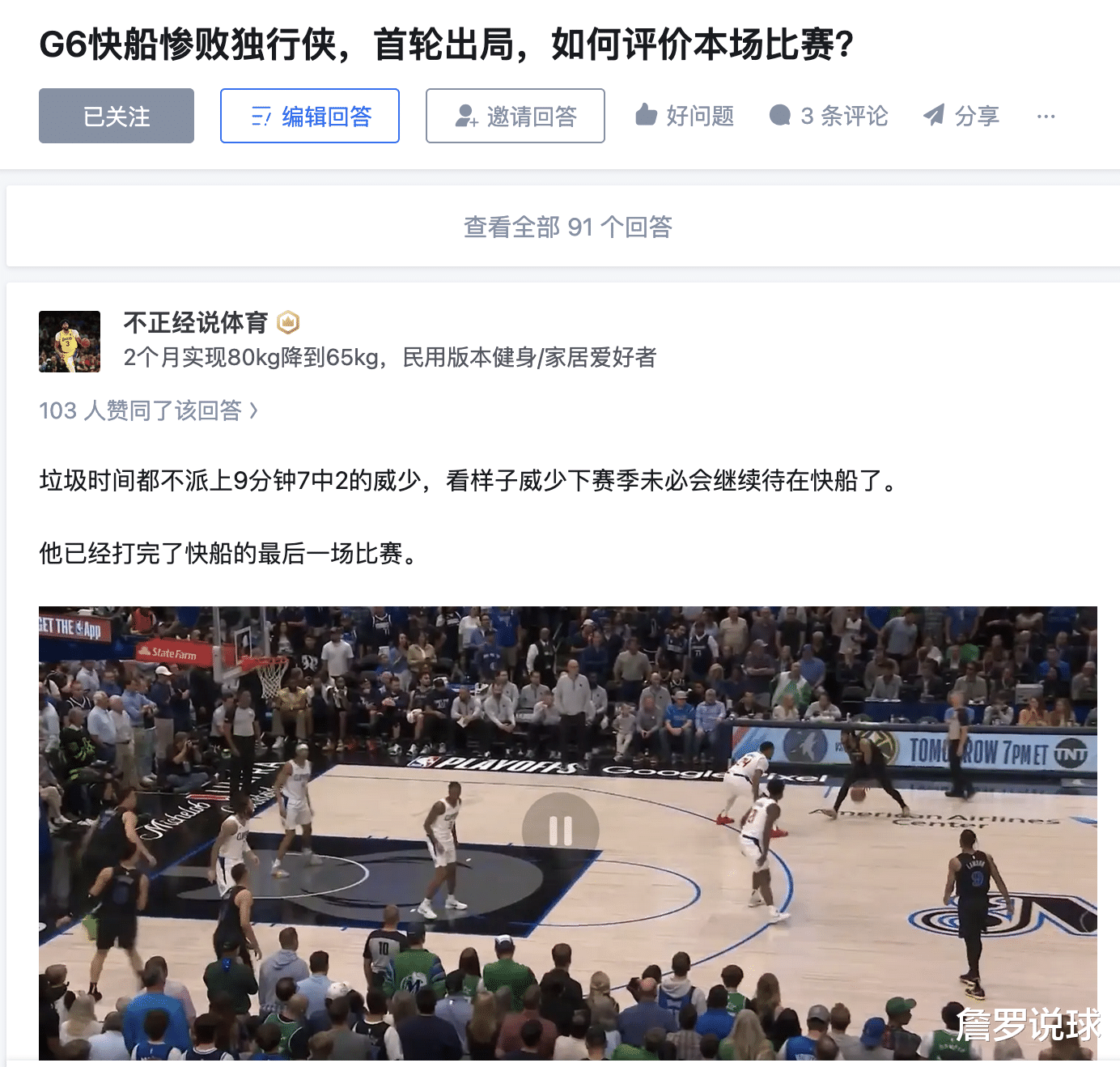 我在去年快船对阵独行侠的季后赛赛后,这么评价了威少: