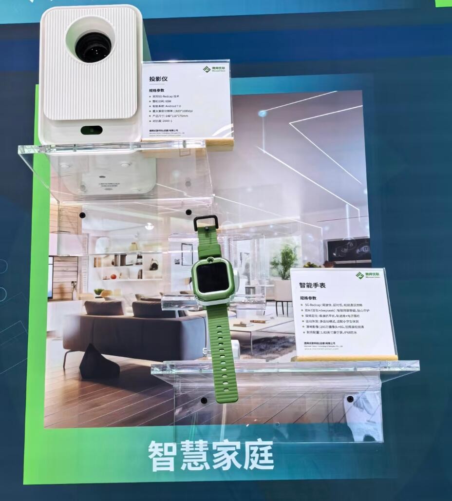 在微网优联科技(成都)公司的展台上,记者看到基于5G RedCap芯片的5G智能手表和5G投影仪,现场工作人员表示,这两款产品都采用了海思的5G RedCap芯片。