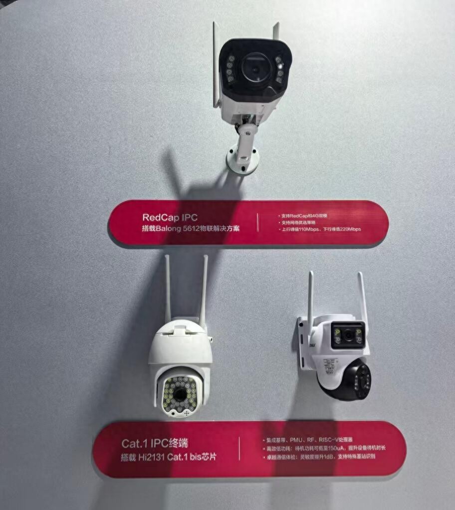 早在2024年,海思就发布了Redcap芯片,主要的性能优势来自端网协同、超级上行和精准定位。2025年10月10日,电子发烧友记者在展会现场看到搭载Balong5612物联网解决方案IPC,现场工作人员介绍,这款芯片符合 3GPP Release 17 标准,支持 5G SA(独立组网)模式,并向下兼容 4G,支持Redcap和4G双模,上行最大峰值速率是110Mbps,下行峰值速率220 Mbps,满足工业级中高速物联网需求。