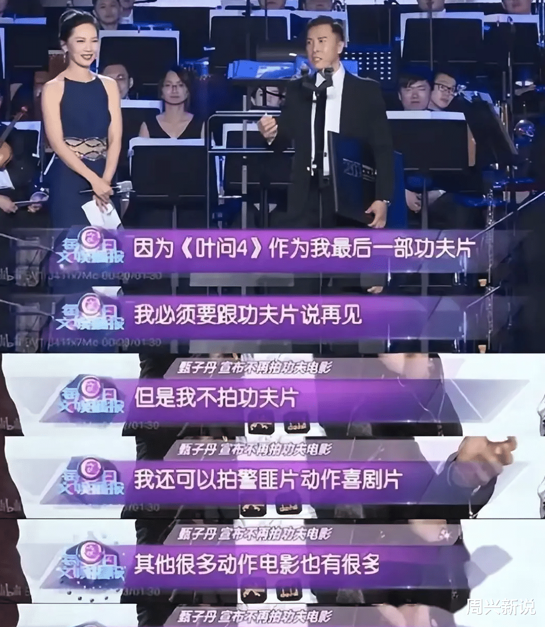 记得《叶问4》拍完后,甄子丹在一次活动中被问到是否还会拍功夫片,他当时说:“以后不会再拍功夫题材的电影了。”