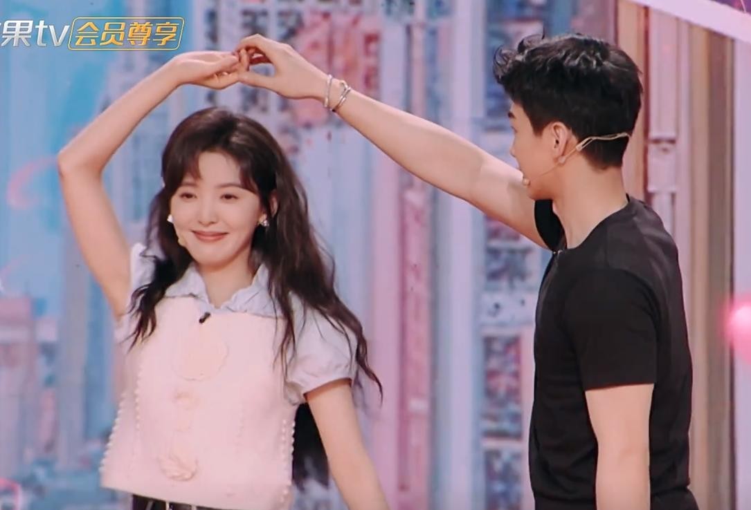 在跳八音盒舞蹈时,白敬亭的手一直包裹着章若楠的手,生怕她摔倒。