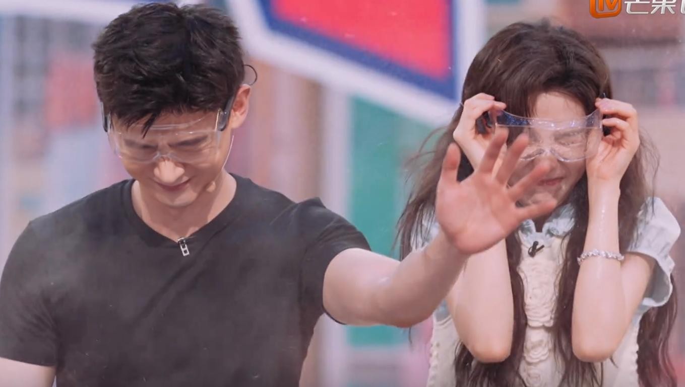 在泼水答题环节中,白敬亭多次主动伸手为章若楠挡水,这个举动展现了他对章若楠的关心和保护。
