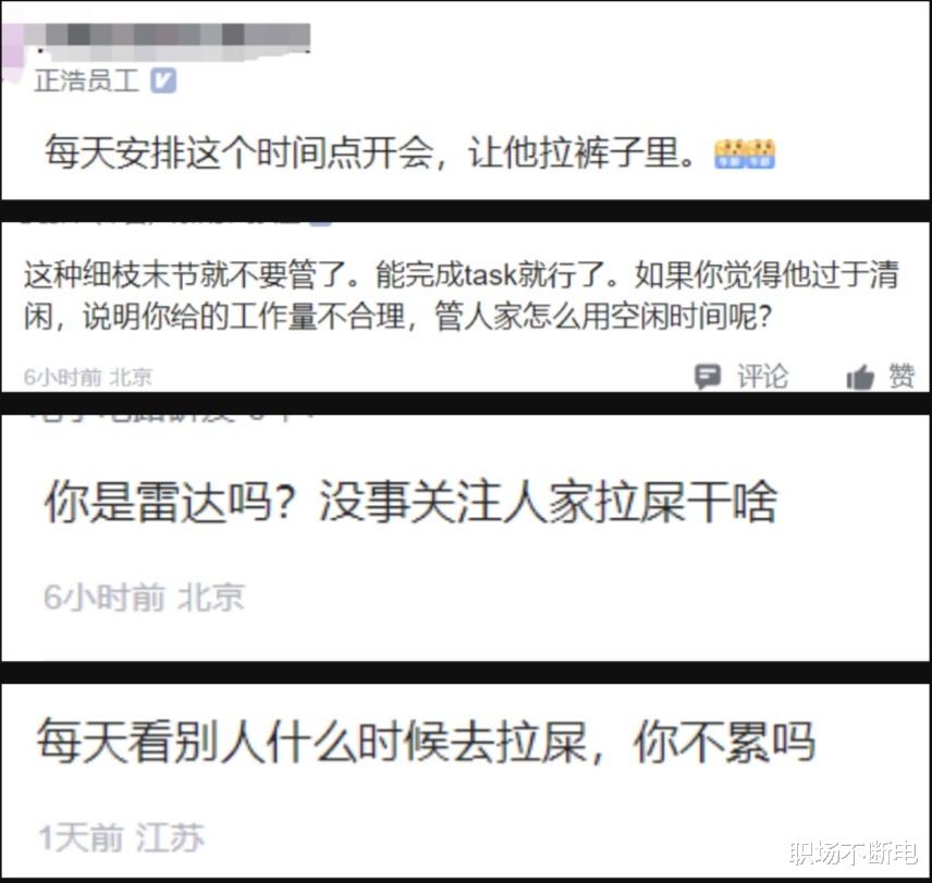 看完了,真的是下头,一个leader不天天想着怎么给公司创造价值,带领团队成长,天天跟踪下属拉屎这个事情。最重要的一点是,腾讯的人,作为领导(我猜测他应该是领导),也算是有能力的人,连员工摸鱼这种事情就管理不了,拿出来只能给人喷。