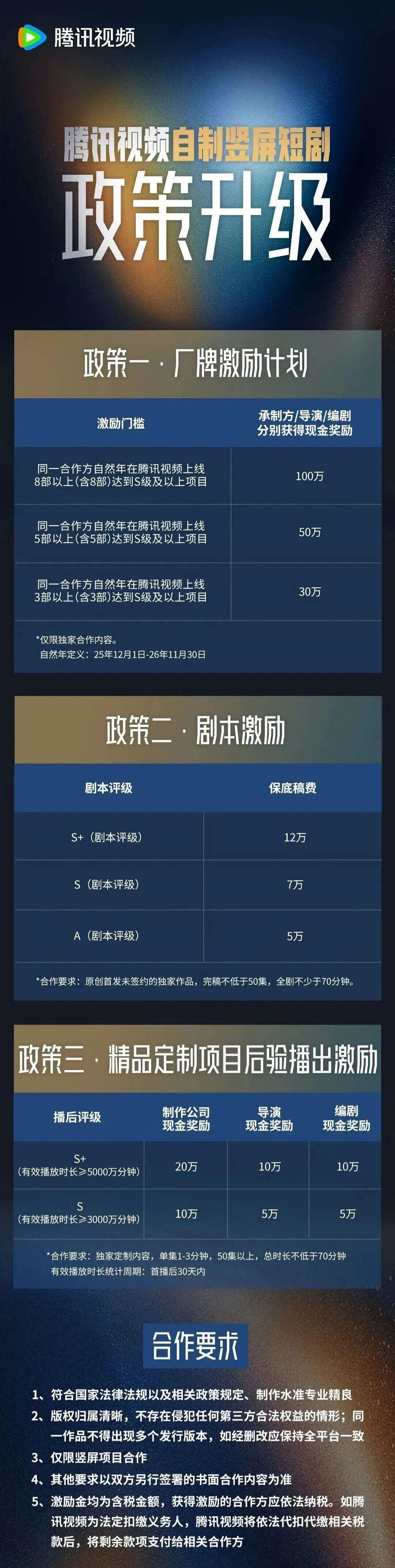 如果有相关需求要在腾讯发剧的创作者,可以比照激励政策,调整以后的创作和合作计划。