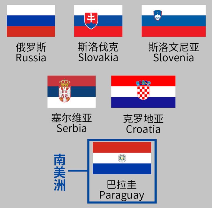 7. 巴拉圭共和国 (横向红白蓝,中心国徽)
