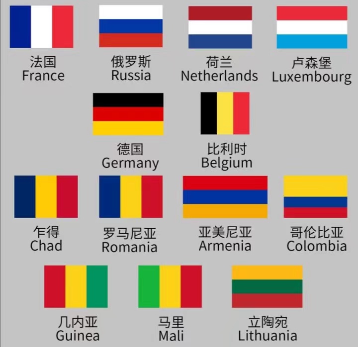 世界上由三色条纹定制国旗的国家是最多的,目前有71个国家。