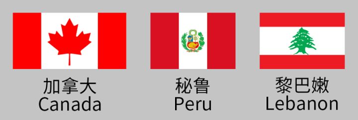 16.加拿大联邦 (纵向红白红,中间一枫树叶)