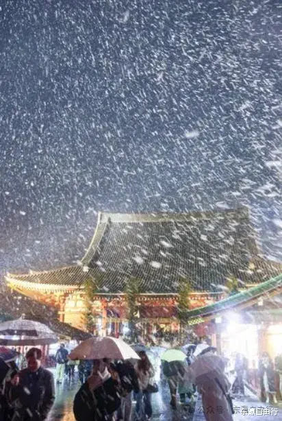 据日本气象厅数据,截至2日18时,新潟县糸鱼川市24小时降雪量达到64厘米,福井县南越前町41厘米,鸟取县大山町38厘米。雪势之下,羽田机场往返鸟取机场的部分航班已经取消。东京这场初雪来得并不算意外,时间上比往年平均早了1天,但比去年冬天晚了14天。2日傍晚开始,市区陆续出现雨夹雪。在浅草寺,即使天空飘着雪,仍有不少人撑着伞前来新年参拜,画面多少有点冬日限定的感觉。