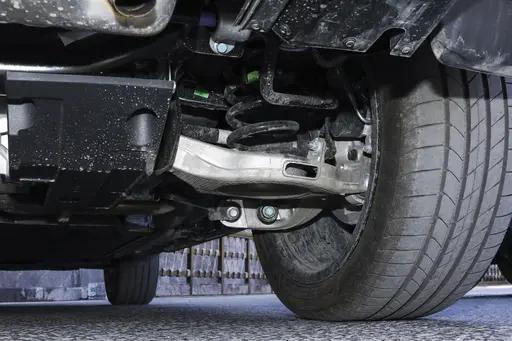 这套MRC磁流变悬架,是京西智行第四代MagneRide®磁流变悬架系统,采用电磁线圈替代传统机械阀片,用磁流变液替代传统减震器油液,通过电磁效应,实现每秒高达1000次的动态阻尼调节,响应速度比传统阀系减震器快太多,能实时适应不同的路况,原理很复杂,但体验很简单:它能让悬挂“软硬瞬间可变”。