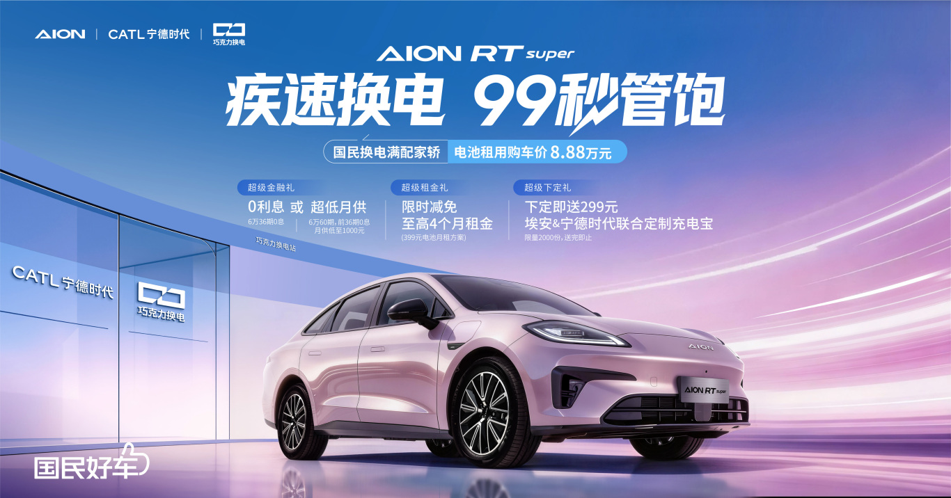 4月8日上市的“国民换电满配家轿”埃安RT super,给出了一个几乎没有短板的答案。这款车不仅颜值在线,更通过“车电分离”技术,将99秒疾速换电与505公里长续航合二为一,让“随时出发”成为日常。与此同时,它还一次性配齐了以往30万级车型才有的越级配置,让年轻人无需在预算和体验之间做选择。