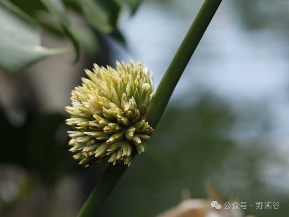 请将目光从宽大的叶片下移,你会发现在它的茎杆上,悄然生出一个洁白的球形花序,直径约3-5厘米,像一个精致的白色绒球。这便是它真正的花朵,安静、素雅,甚至有些拘谨。然而,托举着这白球的,却是长圆形、顶端带刺的苞片,它们层层叠叠,宛如一件具有建筑美感的异形铠甲。尖苞柊叶就像一位内在与外在极具反差的艺术家,用白色的柔美与苞片的锐利,共同演绎着林下的静谧与奇诡。