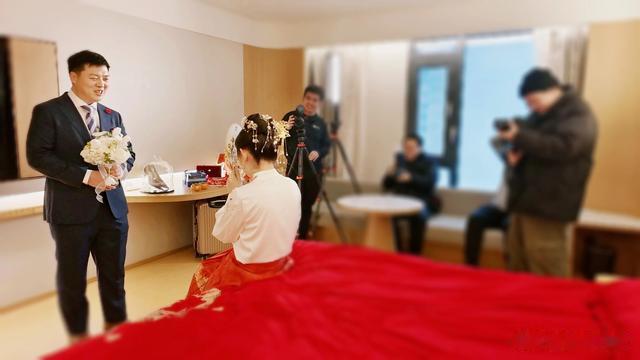 由于新娘家不在本地,选择自酒店出嫁。包了酒店十二层的一个大套间,作为出阁婚房。新娘的父母伯伯姑姑以及我们这群亲友,都隔壁左右地住在十二层,俨然形成了“娘家人的专属阵营”。