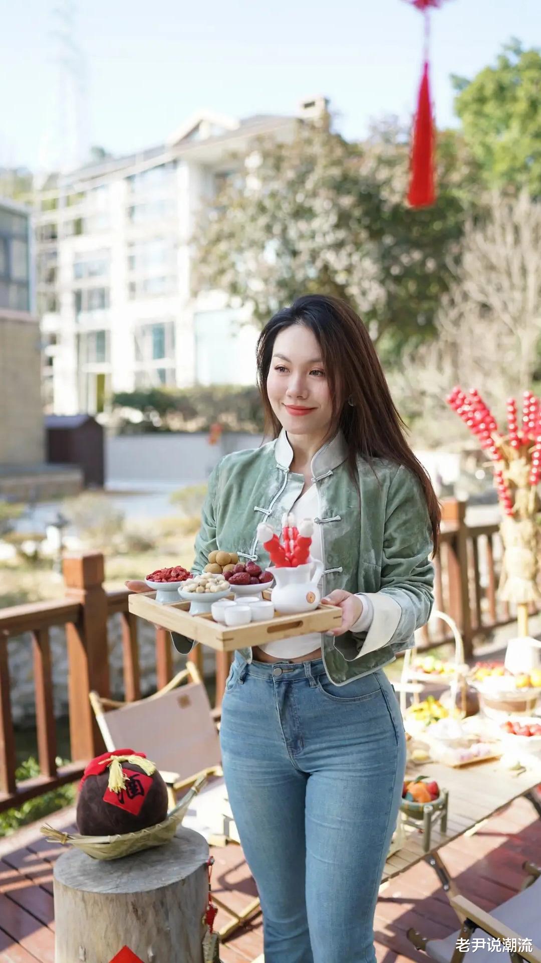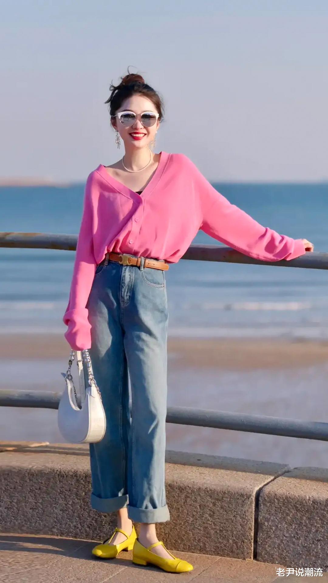 用一条高腰直筒或微喇牛仔裤,搭配材质柔软的针织衫或蕾丝上衣,既能优化身材比例,又增添了几分优雅气质。