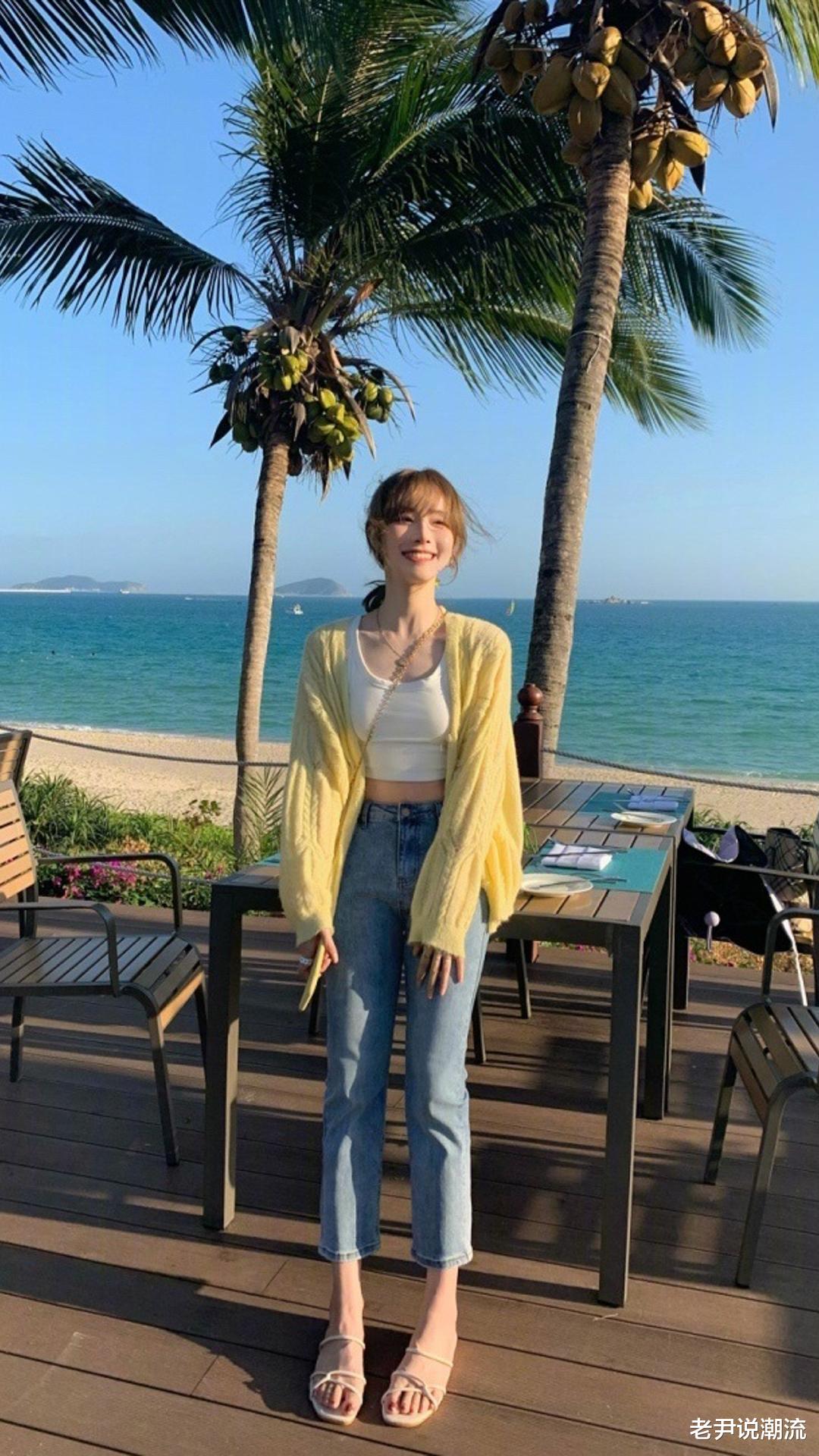 牛仔裤搭配一件抹胸条纹衫或纯白衬衫,踩上一双帆布鞋,慵懒随性的气质瞬间拉满。配一顶草帽或竹编包,轻松点缀出度假感。