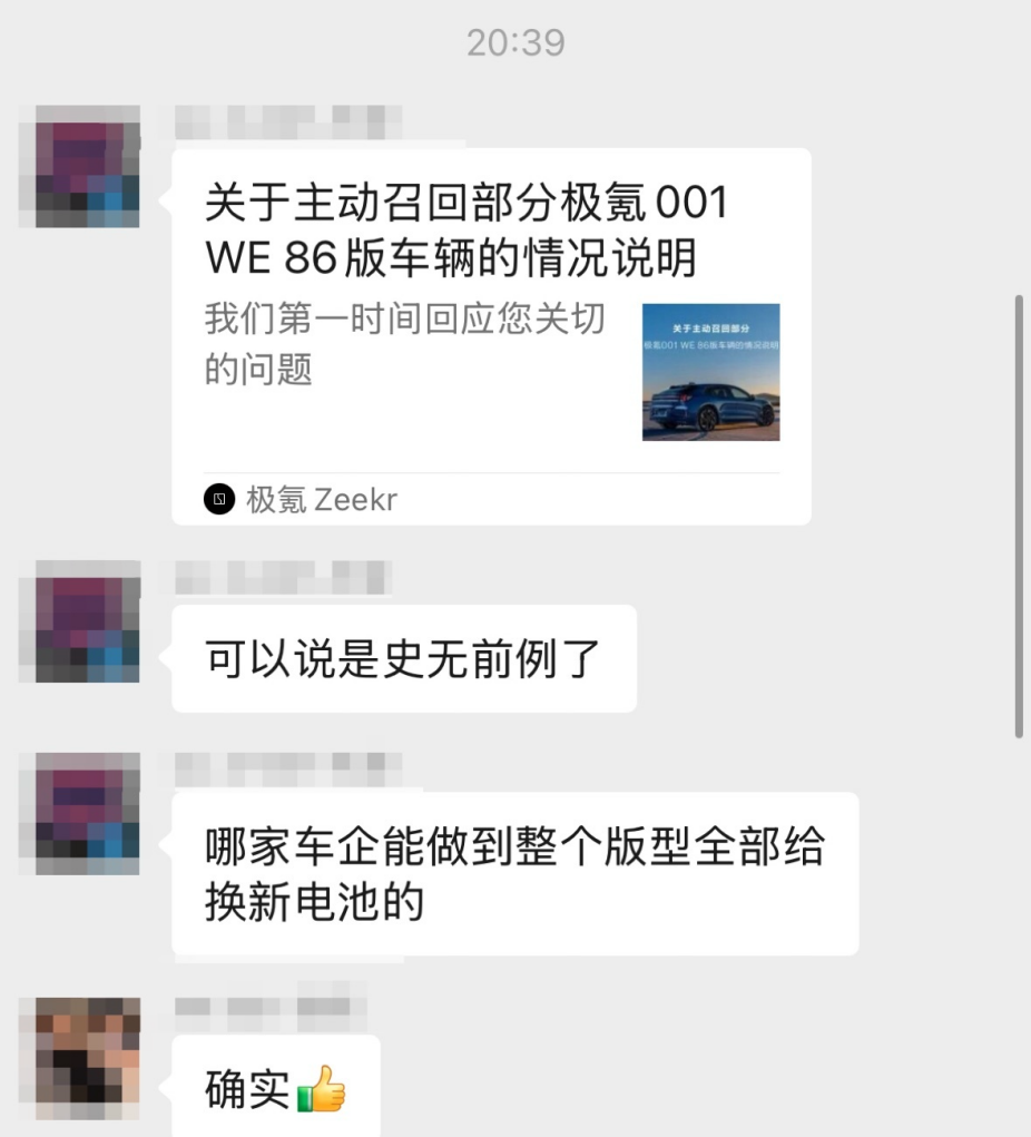 极氪这次召回公告,让我们001车主群沸腾起来了,看到这次极氪处理的方式和全过程,我们这些老车主是打心眼儿开心,也很庆幸,当时选择的是极氪