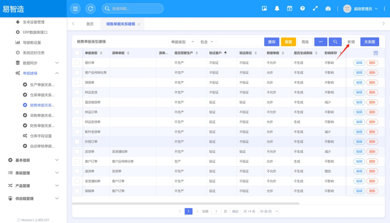 ⚫定义单据的名称、来源、是否影响库存、是否可以新增、是否生成条码、是否扫描核实单