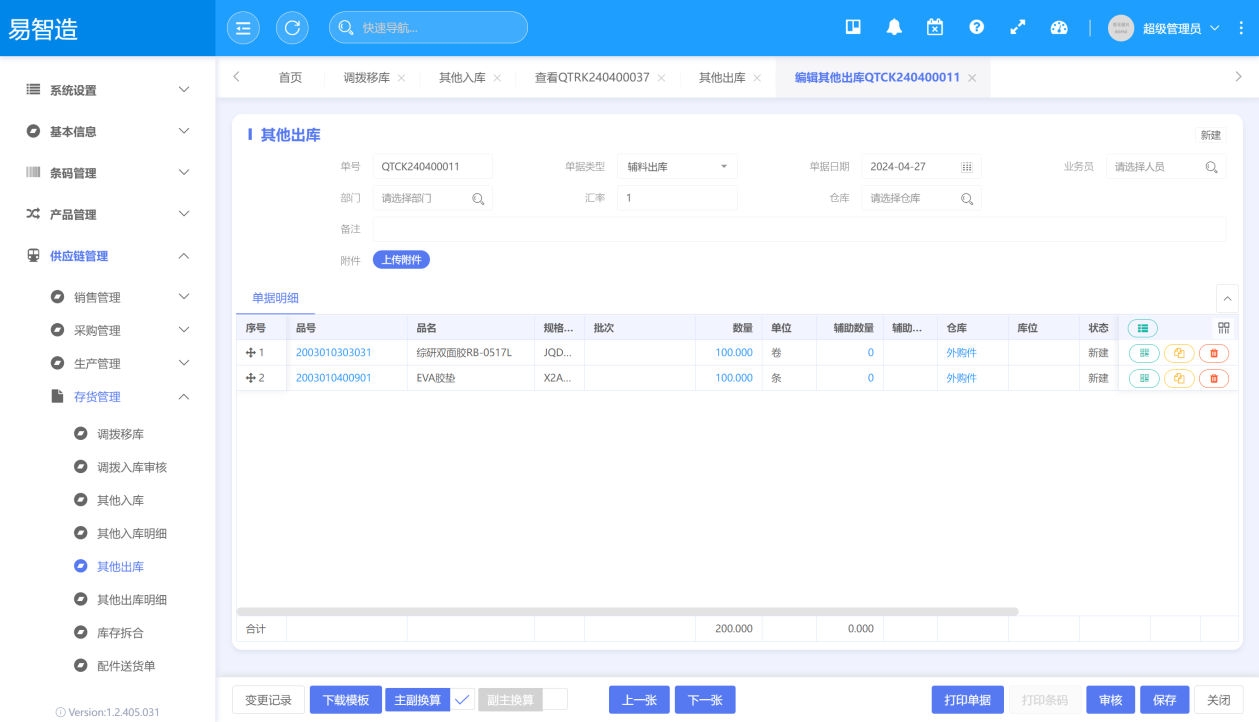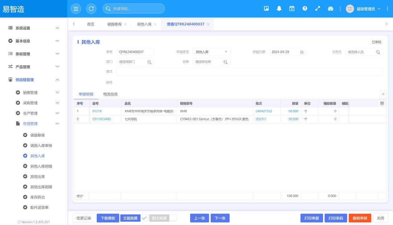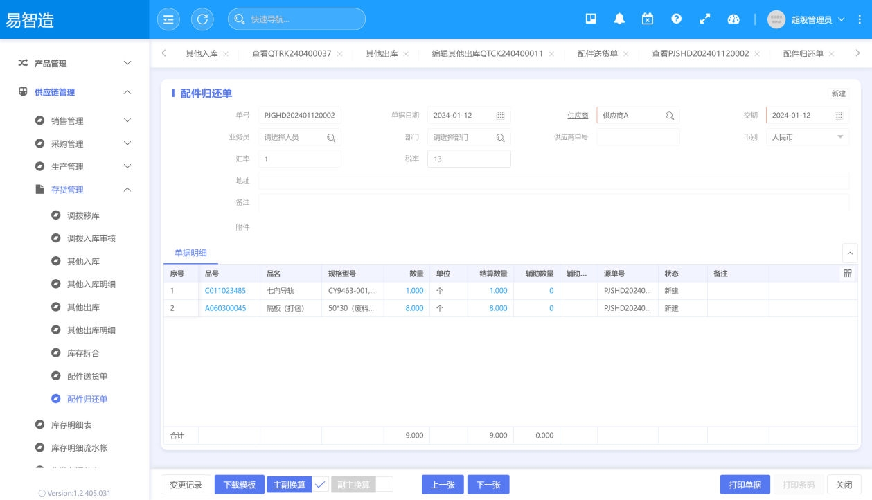 库存管理主要业务功能模块包括其它入库、其它出库、调拔、借入归还、盘点等业务
