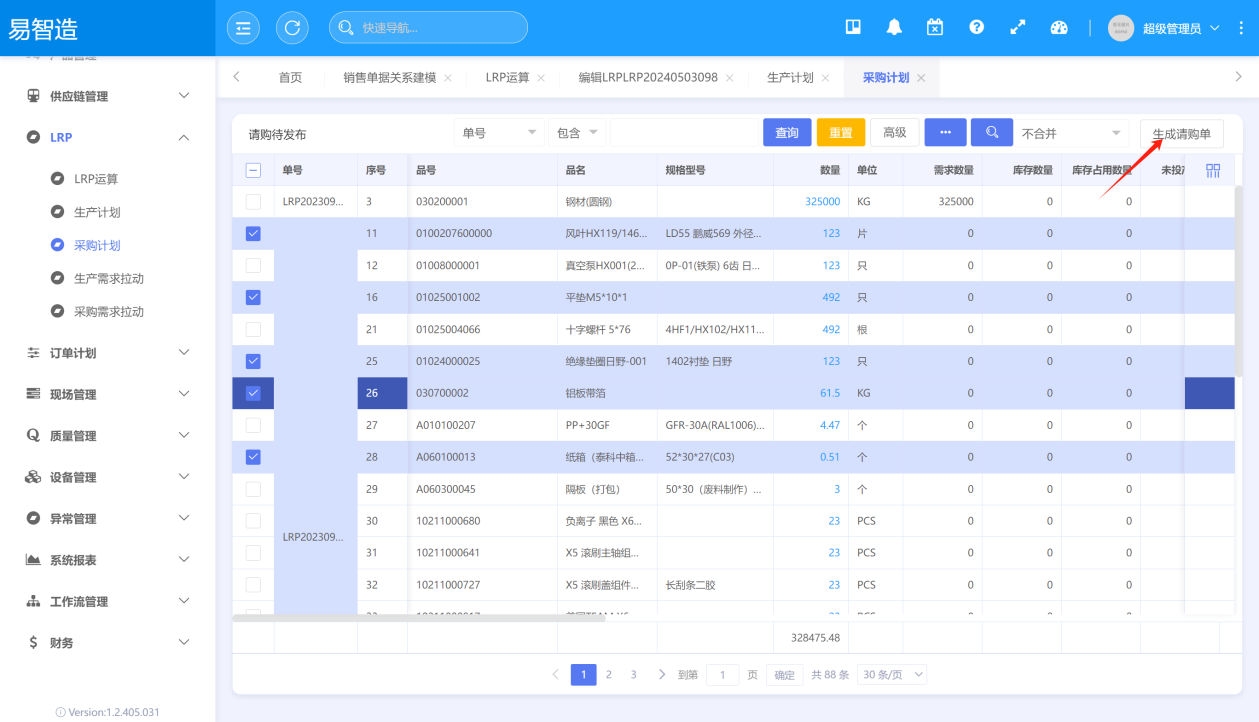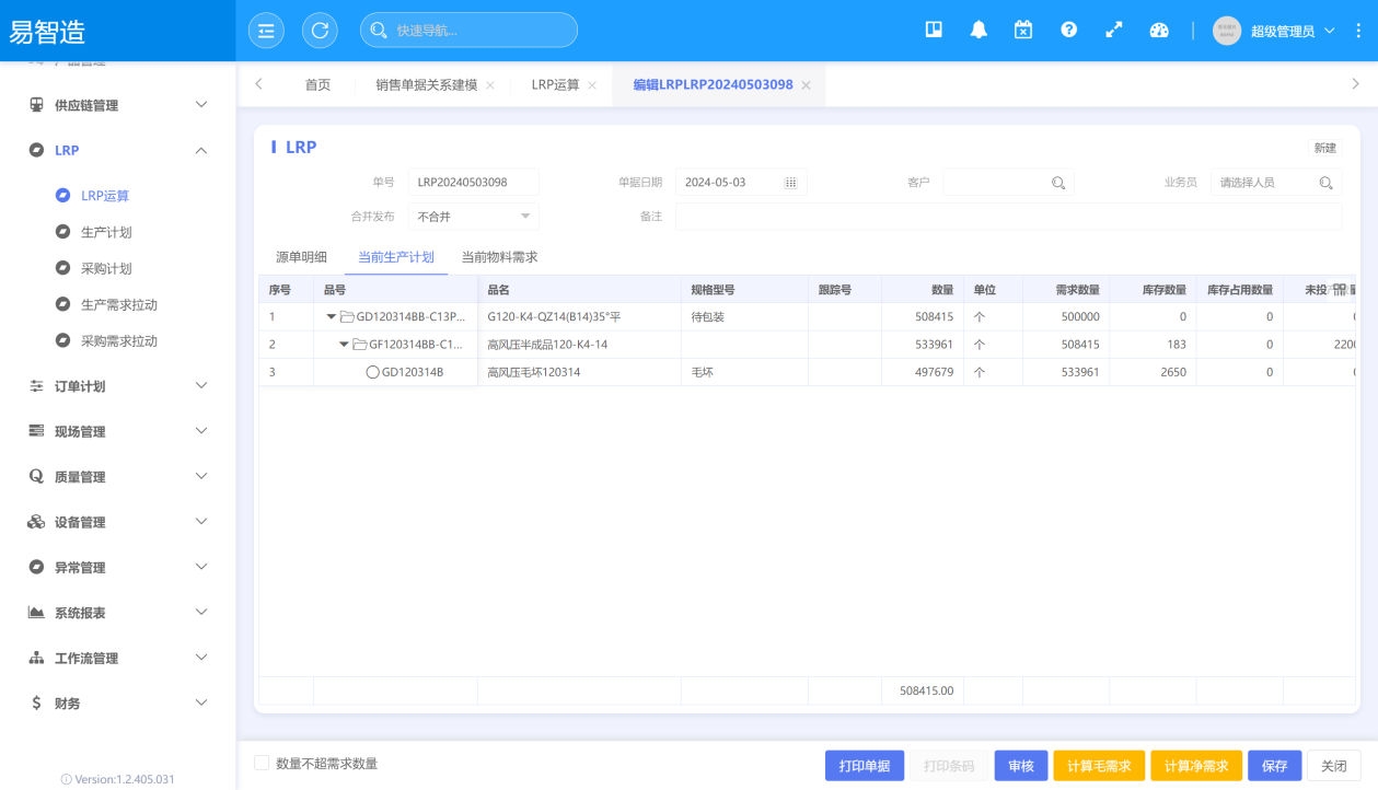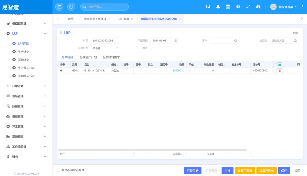 选择来源订单,再 LRP 计算;生成生产计划及采购计划