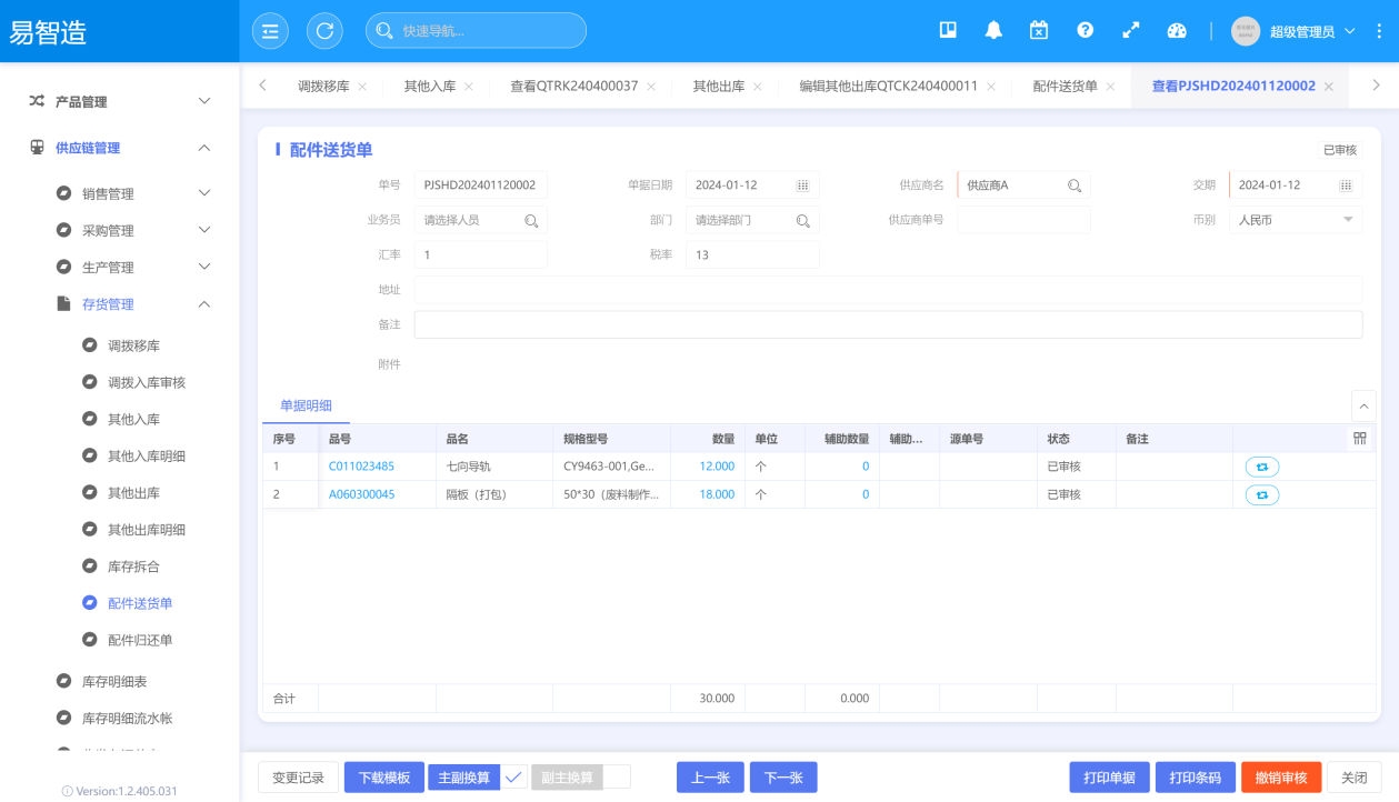 可以根据用户需求,自定义配置销售、采购、生产、仓库的单据及业务流程。
