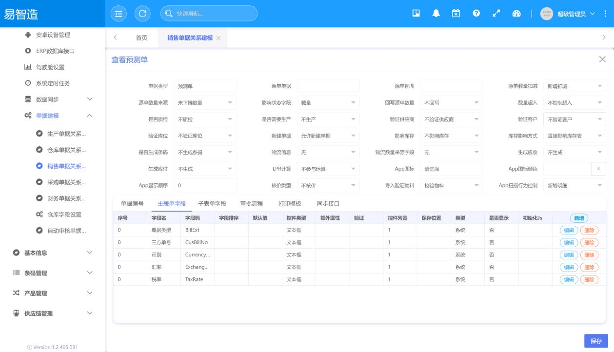 ⚫定义单据的编码规则、主身字段、单身字段、审核流程、打印样式默认选择、API 接口配置