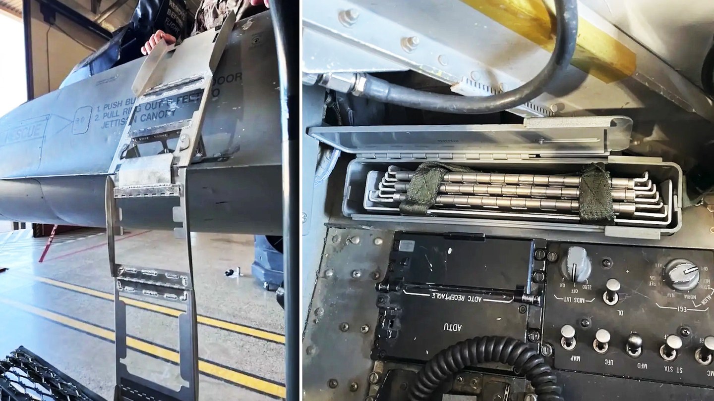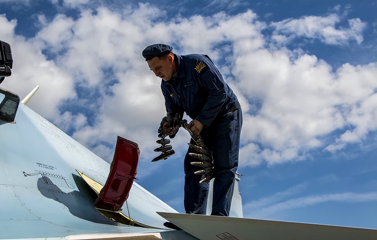 右鸭翼后侧的的装弹口+前起落驾驶舱右舱壁下侧的主加油口+右侧机翼后缘下部开口向下的辅助加油口+机身左侧主起落架与副鳍之间的发动机短舱侧壁上的充电口+比人高的机翼挂架+三对挂架被折叠+外挂式的登机梯=空战性能确实不错,但整备难度比较大……