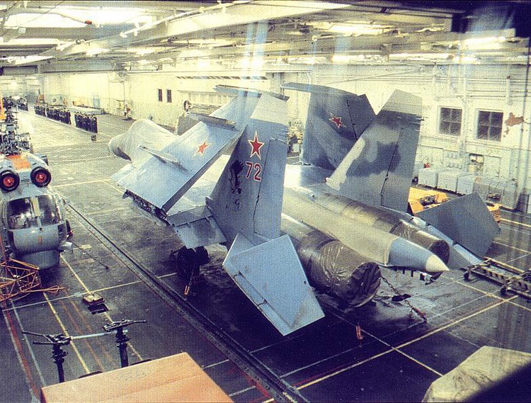 遵循最短路径原则设计的后果,往往就是机身上的开口哪哪都是,侧卫家族的开口那就是遍布全身的,从机头到机尾,布满了各式各样的开口,加油,加电,充氧、航炮、诱饵弹……直接后果就是由于开口遍布全身,甭管是苏-33还是歼-15都没法将机尾伸出飞行甲板外停放,对甲板空间的侵占比较严重。