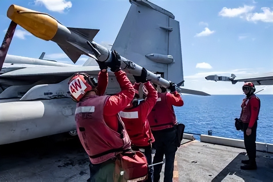 美国海军也非常看重如何降低导弹挂载基准高度的这个问题。美国空军的挂架高度往往比较低,一个梯形就完事了,在满足导弹挂载要求的前提下,飞行阻力怎么小就怎么搞。而美国海军的挂架明显就要高很多,其原因就是为了降低紧急情况下肩扛挂弹的难度。相对低矮的挂架,用肩膀扛着装弹的难度明显要低很多。
