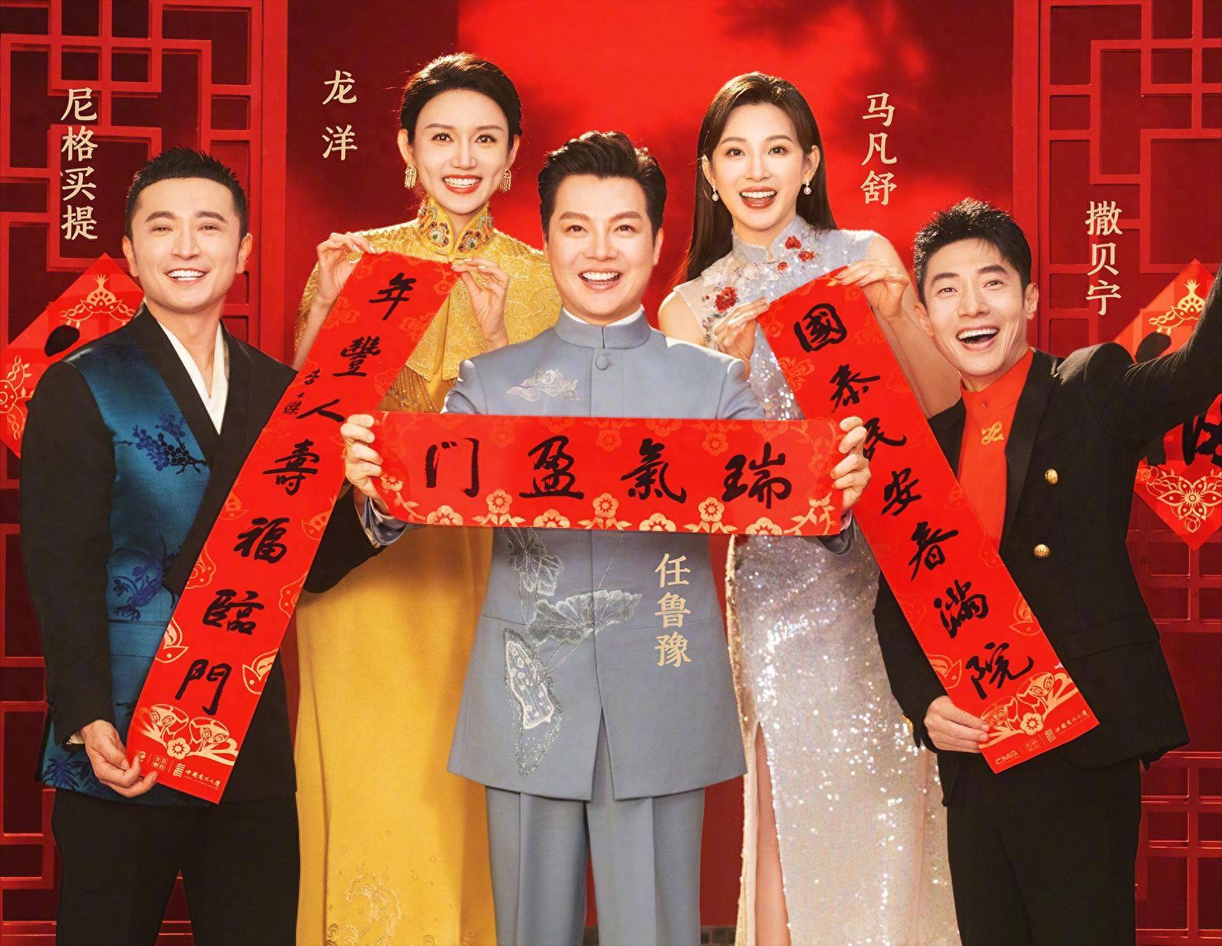 这次主会场的六位:任鲁豫、撒贝宁、尼格买提、龙洋、马凡舒、刘心悦,排开一站,画面很清楚——任鲁豫和龙洋是那种“你不看也不行”的存在。