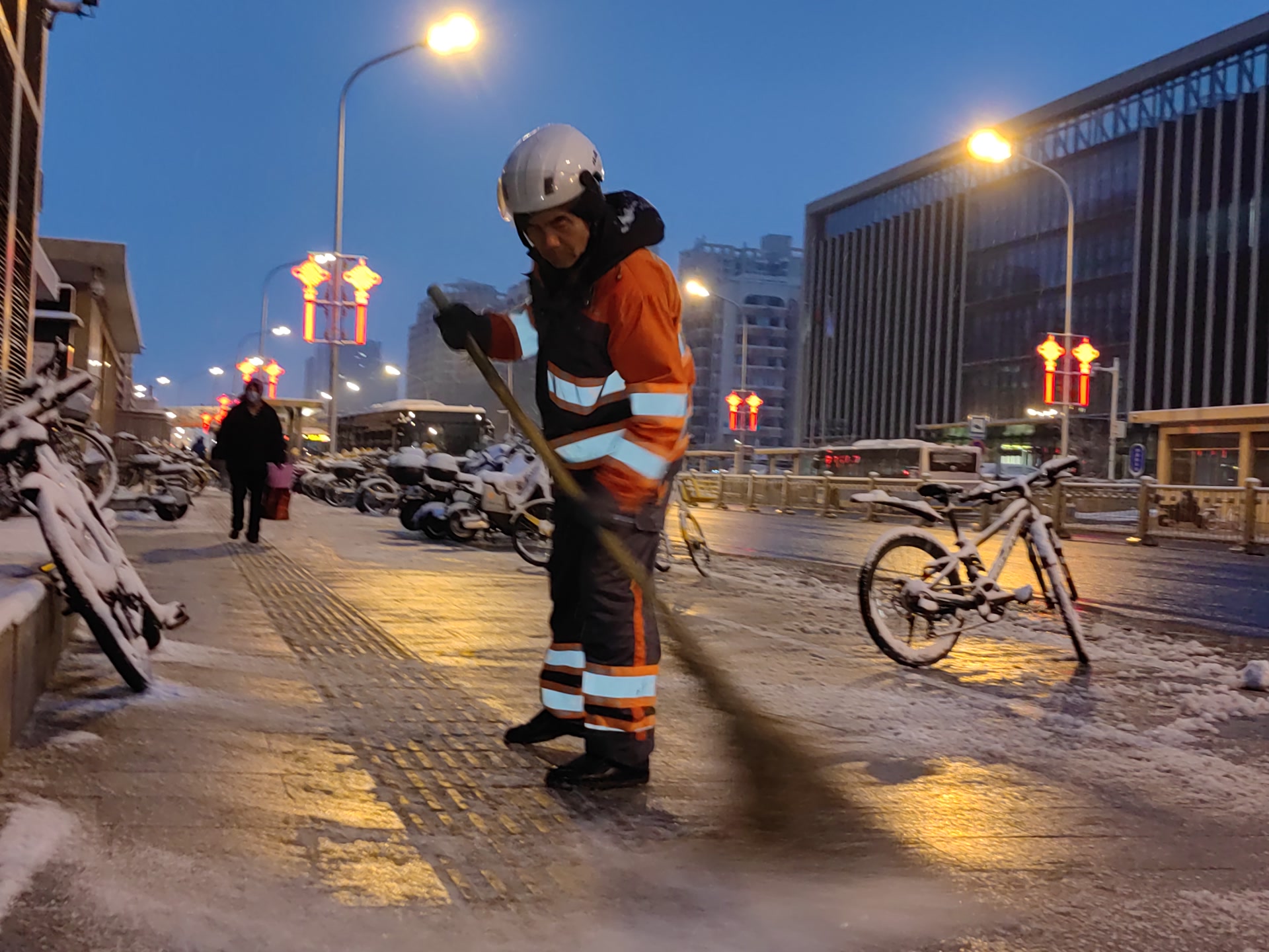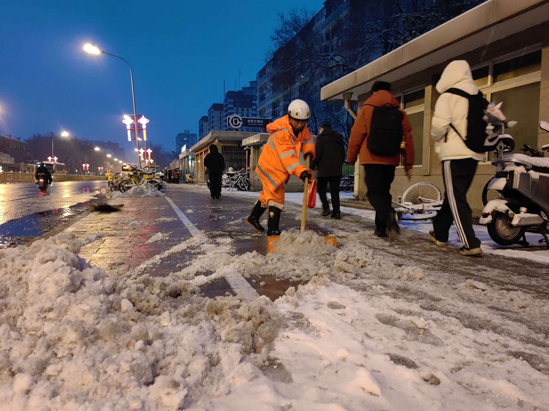 以雪为令,闻雪而动。从4日起,石景山区的环卫工人24小时全员在岗,持续不间断开展扫雪作业。采取“机械+人工”的作业方式和“专业力量+社会动员”的工作模式扫雪铲冰,重点聚焦医、学、景、商周边区域及城市交通主干线,各背街小巷至少开辟出一条1米宽的通行通道,确保市民正常出行。