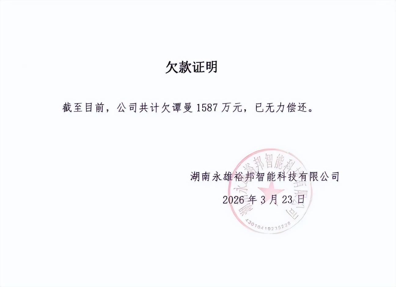 2026年3月10日,长沙银行金城支行提起诉讼,要求永雄集团偿还贷款本金3420万元,贷款利息15.2万元,罚息37.05万元,并要求判令对所有抵押物进行拍卖用于还债。