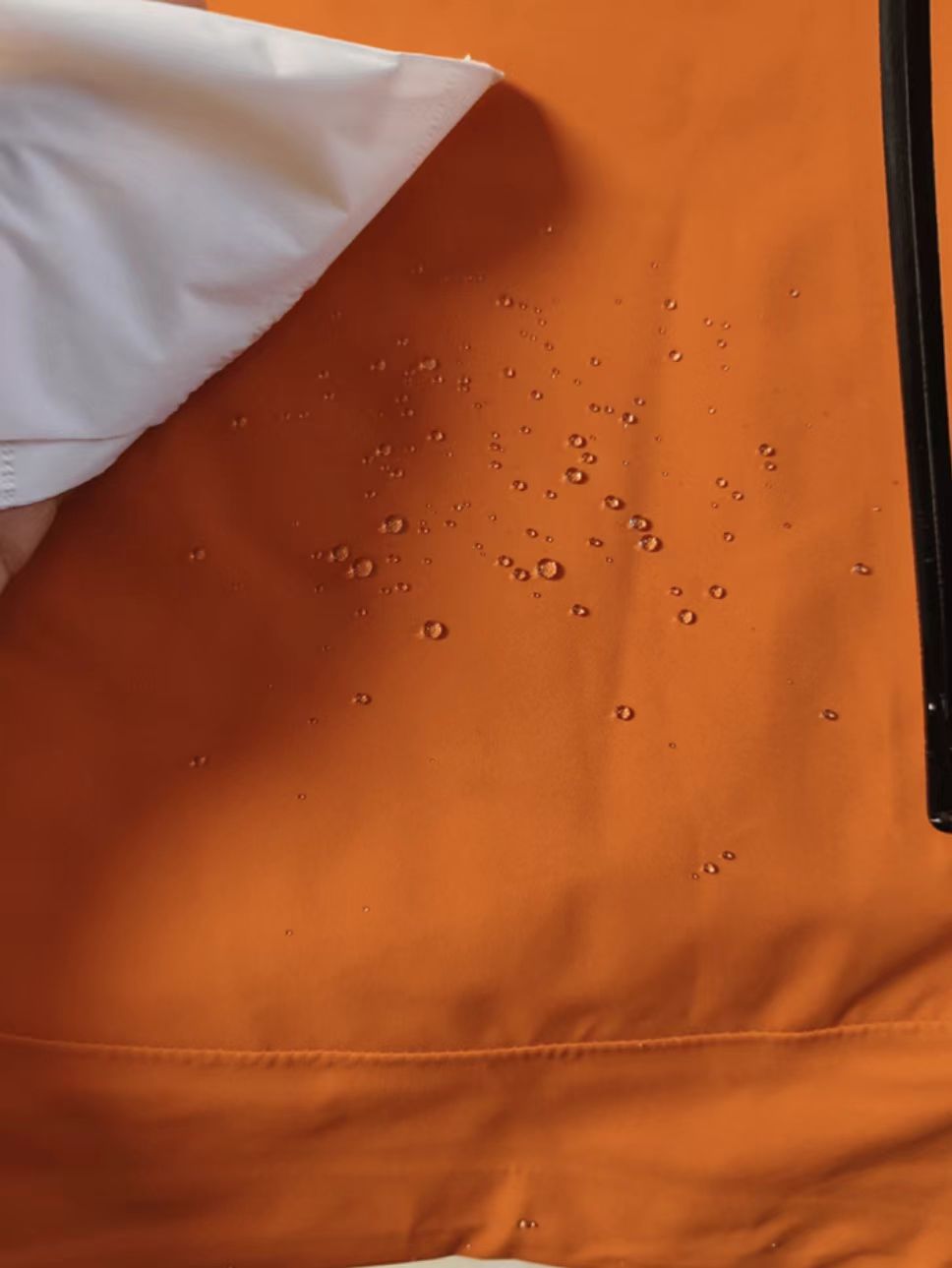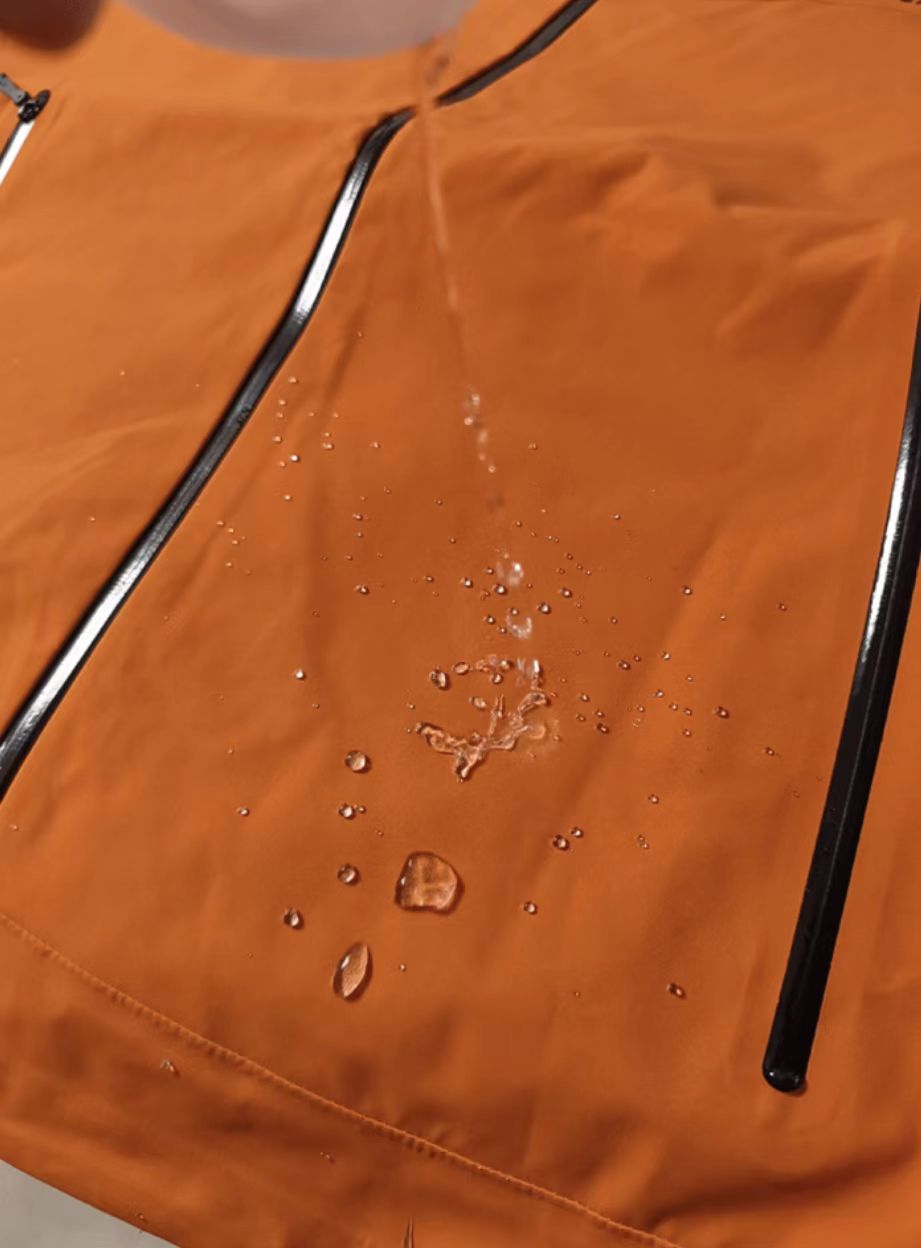 有些防水性能好的冲锋衣,经常会有“闷汗”的尴尬。但这款VBREX拥有30000g/m²透湿率和AMES生物微孔黑科技、配合微张散热传导生物膜、内里高压透气透湿涂层工艺和专业蜂窝网叠式透湿黑科技,实现了“外防水,内透气”。例如将衣服盖在装开水的杯子上,上方倒扣一个冷玻璃杯,短短30秒内,冷玻璃杯内壁就凝结出密密麻麻的水珠,透湿性非常强。