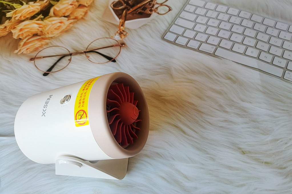 选择这款西圣桌面暖风机mini的主要原因,精致的外观设计,体积非常小巧,能摆在桌面任意一个角落,风机主体大小和一个咖啡杯相仿,而且简约前卫的外观也让它可以成为我们桌面上的一件工艺品,好像一台飞机的涡扇发动机一样,真的非常的有型又有面,摆在桌面哪个位置都很棒!