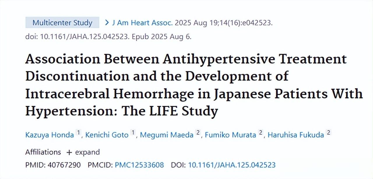 参考资料1、美国心脏协会杂志.日本高血压患者停用降压药与脑出血发生之间的关联:LIFE 研究.2025-08-19