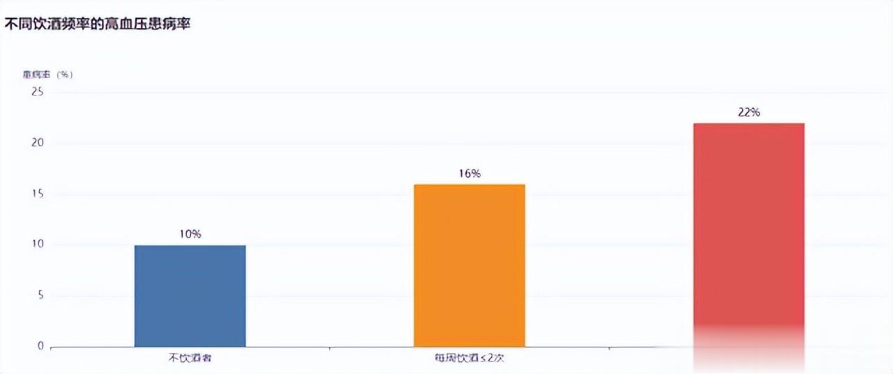 《饮酒与高血压的关系》对超过5万名中国成年人长期随访分析发现,与不饮酒者相比,每周饮酒频率较高者高血压患病率明显升高;其中,每周饮酒频率较低(≤2次/周)者高血压风险就比不饮酒者高出约1.5–1.7倍,频率更高者风险更大,这说明酒精消费本身就是高血压的重要独立危险因素。