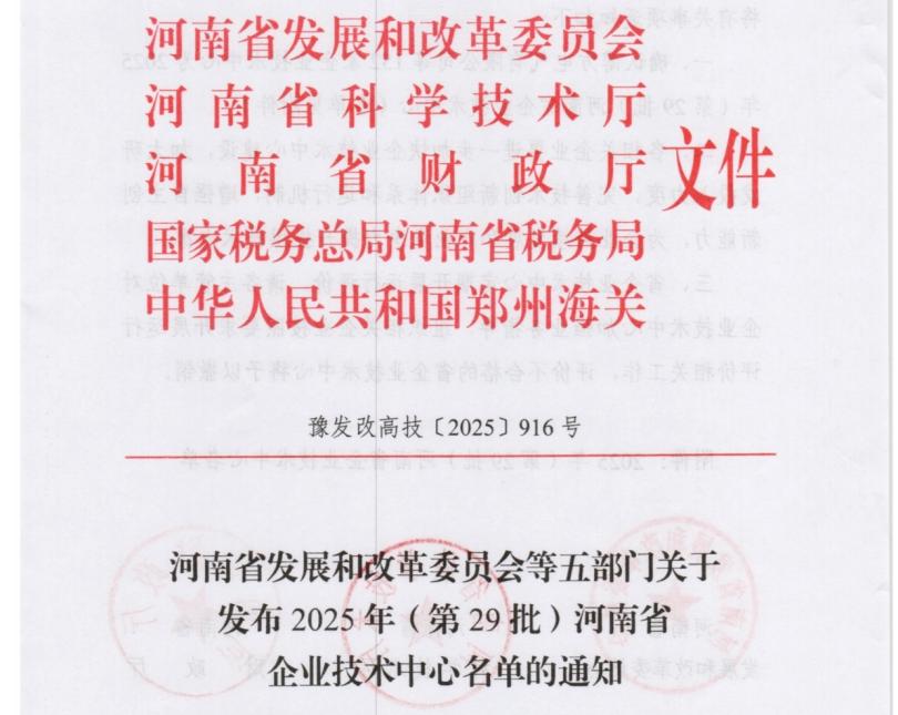 近日,河南省发展和改革委员会、省科学技术厅、省财政厅、国家税务总局河南省税务局、郑州海关五部门联合发布了2025年(第29批)河南省企业技术中心名单。郑州源创基因科技有限公司凭借扎实的研发实力与持续的技术创新,成功获评“河南省企业技术中心”。