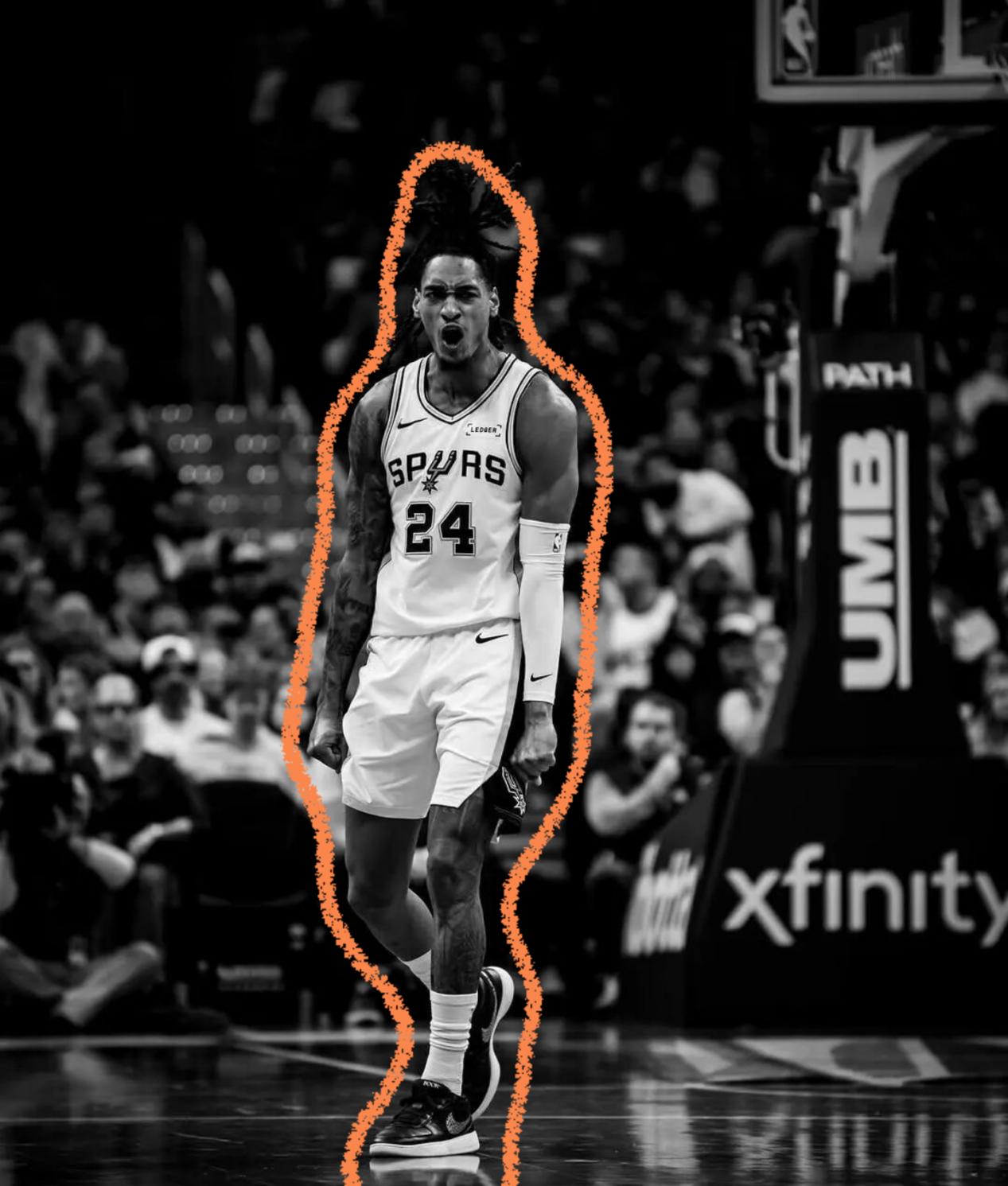 他专注外线牵制、防守抢断,在场时马刺百回合多赢 5.9 分,首发胜率高达 75.6%,