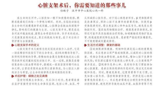 参考资料[1]任琳子.心脏支架术后,你需要知道的那些事儿[J].健康必读,2025