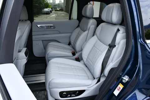 车内的舒适配置也相当丰富,双零重力横滑座椅是一大亮点。零重力座椅采用贴合人体工学的设计,能够有效分散身体压力,减少长途乘坐的疲劳感,横滑功能则让座椅的调节更加灵活,方便乘客进出第三排或者调整乘坐姿势。移动中岛的加入更是提升了车内空间的实用性,它可以根据需求灵活调整位置,上面配备了杯架和储物格,方便第二排乘客放置物品,同时还支持无线充电功能,为手机等电子设备充电提供了便利。车内的座椅材质为 Nappa 真皮,触感柔软细腻,前排和第二排座椅还支持加热、通风和按摩功能,在不同季节和乘坐场景下都能为乘客带来舒适的体验。