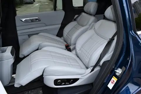 进入车内,首先感受到的是其宽敞的空间。对于家庭用户而言,车内空间的舒适性至关重要。我们邀请了一位身高 182cm 的体验者进行实测,在前排调整到合适的驾驶位置后,体验者头部仍有一拳两指的余量,不会产生压抑感。保持前排座椅位置不变,体验者来到第二排,此时腿部空间有两拳多的距离,头部空间也有一拳的余量,即使长时间乘坐也能保持舒适的坐姿。第二排采用独立座椅设计,支持前后、左右移动以及靠背角度调节,还配备了腿托和腰部调节功能,进一步提升了乘坐的舒适性。第三排空间表现同样不错,182cm 的体验者坐在第三排,腿部仍有一拳的空间,头部也有三指左右的余量,相比同级别一些车型第三排只能应急使用的情况,这款车的第三排在舒适性上有明显优势,能够满足成年人短途乘坐的需求。