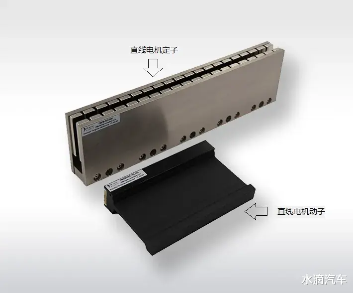 传统电机定子和转子是旋转运动,直线电机的定子和动子是上下平行布置,定子和转子产生垂直于运动方向的磁场,实现直线推力,类似于磁悬浮列车,和减震器的压缩复原类似,做直线往返运动。