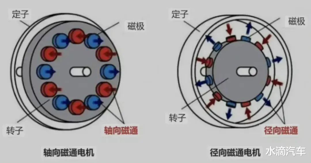 径向磁通电机磁通路径垂直于电机转轴,能量损耗较高。轴向磁通电机的磁通路径和电机转轴方向一致,这种设计缩短了磁路,减少能量损耗。