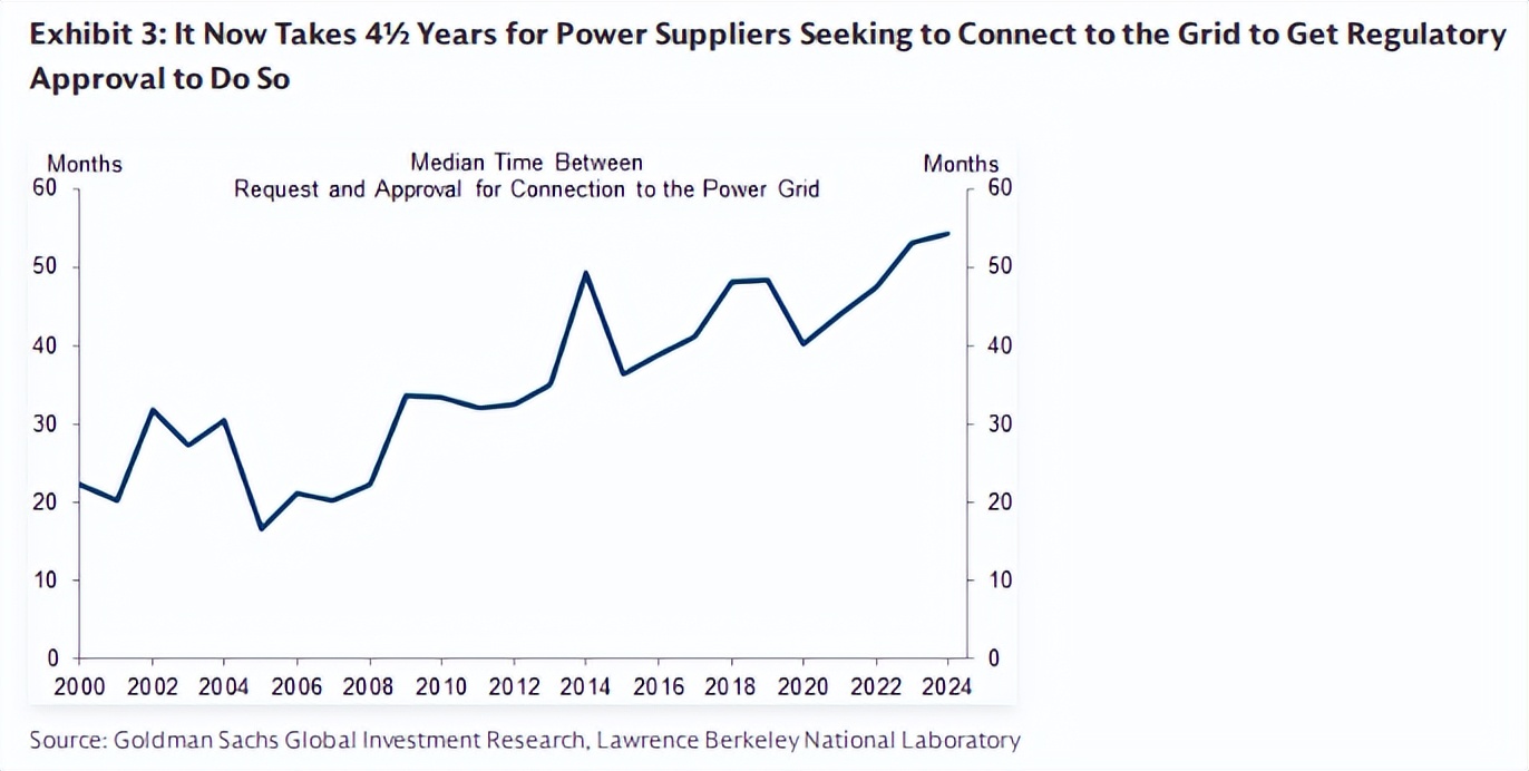 阻碍电力供应更快增长的因素有很多。近年来,将新供电项目接入电网的监管审批时间显著增加,项目提案到获批的平均时间已从2000年的不到2年延长至4年半(见图表4)。如此漫长的审批流程使得2030年前无法实现超出计划的新增天然气发电容量。此外,快速增加发电容量还面临着燃气轮机等专用设备和合格劳动力短缺的问题,而合格劳动力的培训需要数年时间。