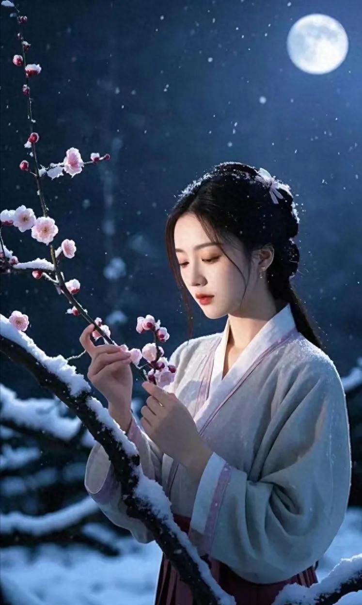 寒香浸雪悄染袖。捻琼枝、春声似有。