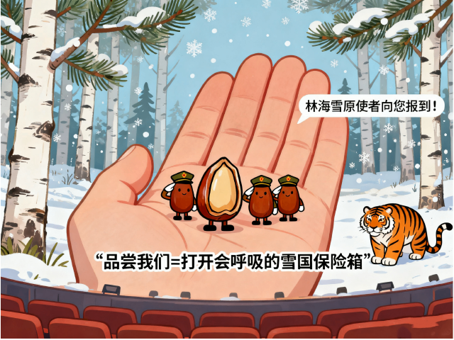 红松子兵团立正敬礼:“林海雪原使者向您报到!”指尖剥壳时的清脆响动,像雪粒从松枝轻轻滑落,果仁在齿间迸发松林晨雾,仿佛听见东北虎踏雪而过的脚步,「品尝我们=打开会呼吸的雪国保险箱」