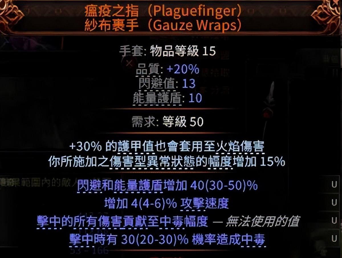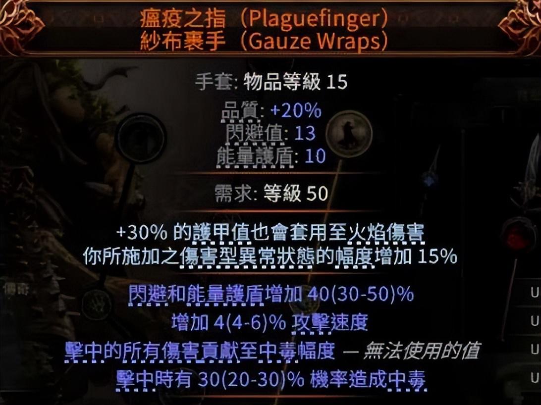 我们使用瘟疫之指这个手套,让所有击中伤害都能造成中毒。再堆高中毒几率。只需要通过技能启动一次疫病之难(以下简称放屁),放屁击杀敌人,践踏鞋对周围敌人造成溢出伤害中毒给放屁充能,在刷图时就可以达成自循环了。当然对单体敌人时,还是需要自己使用技能启动的。