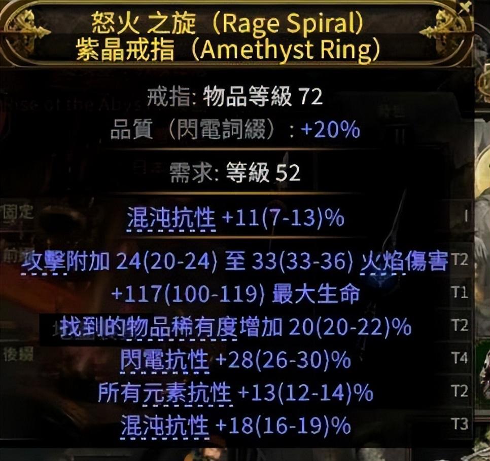 盾牌:护甲和格挡值越高越好,盾牌护甲值直接影响盾墙的伤害。后缀可以做一条深渊的护甲套用混沌伤害。