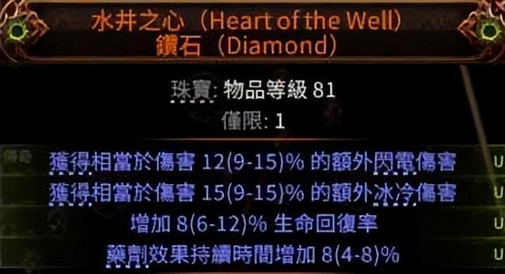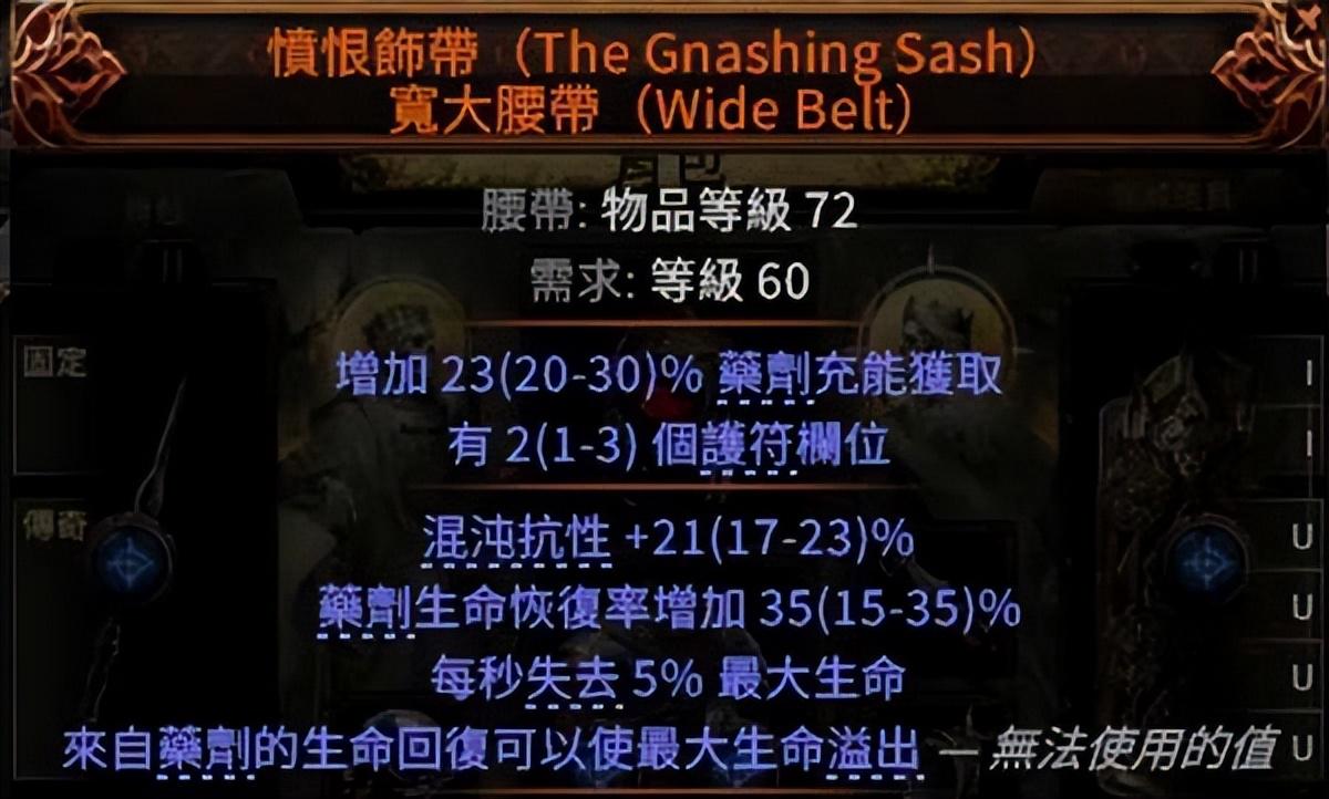 提供生命回复溢出50%生命上限和药剂回复转化为秒回。混沌抗性越高越好,尽量选2护符基地的。