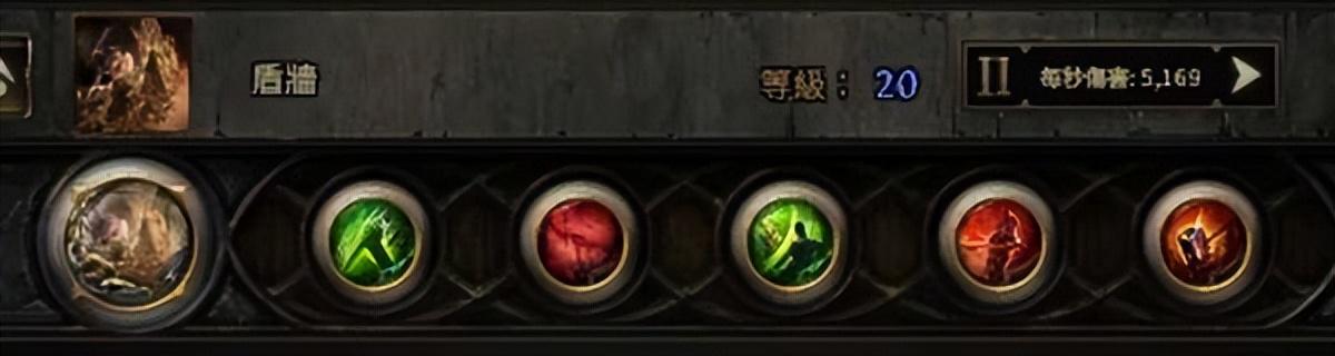 熔岩屏障提供格挡,精魂不够熔岩屏障可以不开,注意盾冲和盾墙绑定武器套装2,回旋斩绑定武器套装1,其他技能同时绑定两个武器套装。