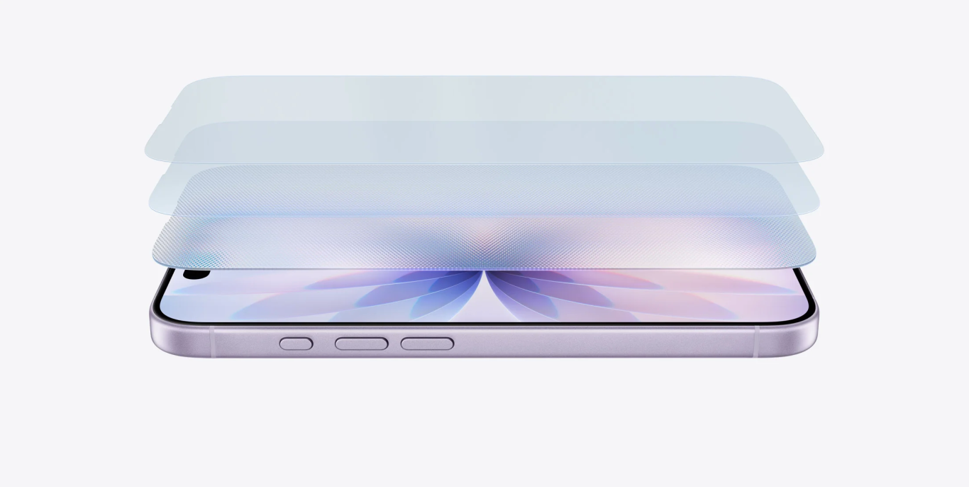 超瓷晶面板(Ceramic Shield)最早随 iPhone 12 面世。其原理是在玻璃基质中嵌入纳米级陶瓷晶体。然而,第一代超瓷晶(iPhone 12-16)虽然在“防摔”上表现优异,但在“防刮”上却始终存在短板——由于玻璃分子结构为了韧性牺牲了硬度,导致屏幕非常容易产生令人心碎的“发丝纹”。